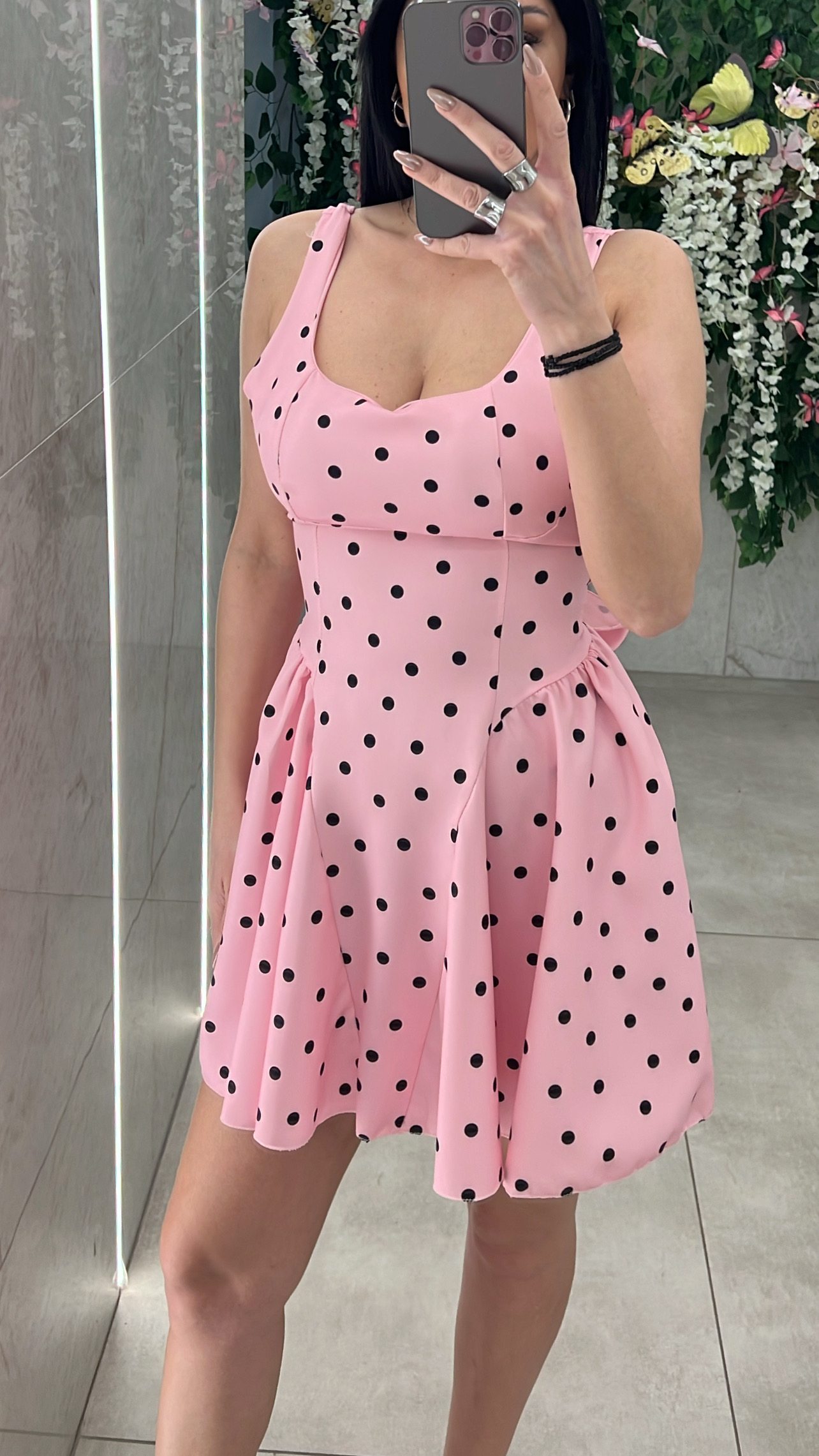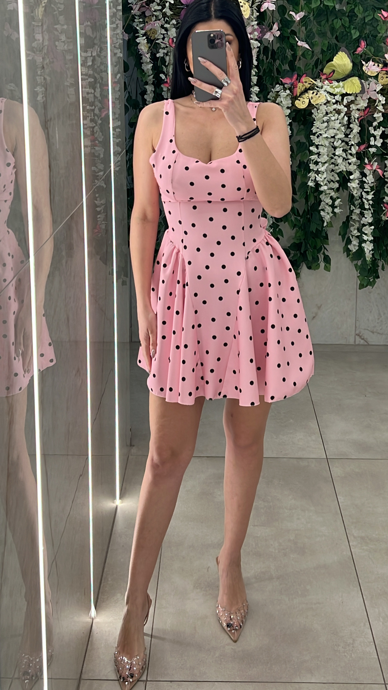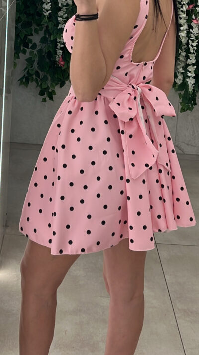 Φόρεμα κοντο πουα , με ανοιχτη πλατη , καπς στο στηθος ,διαθετει φερμουαρ και δένει στην πλατη .