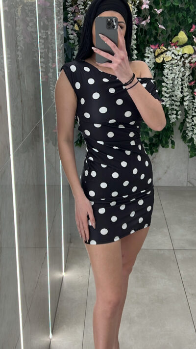 Φόρεμα πουα κοντο ,κανει σουρα στην μεση και πεφτει στον ενα ωμο .