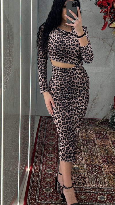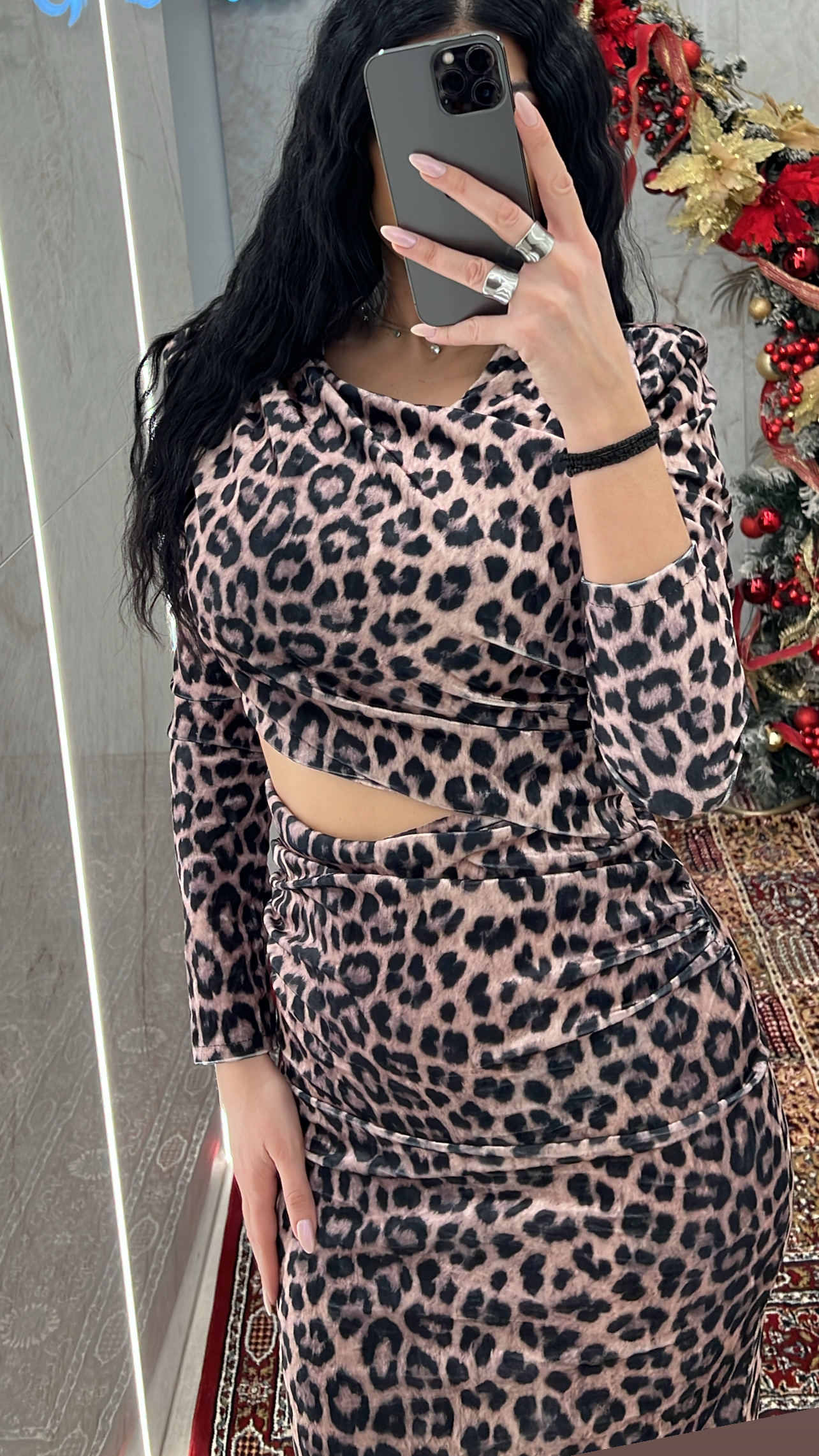 Φόρεμα βελουτέ 37804/ Animal γκρι