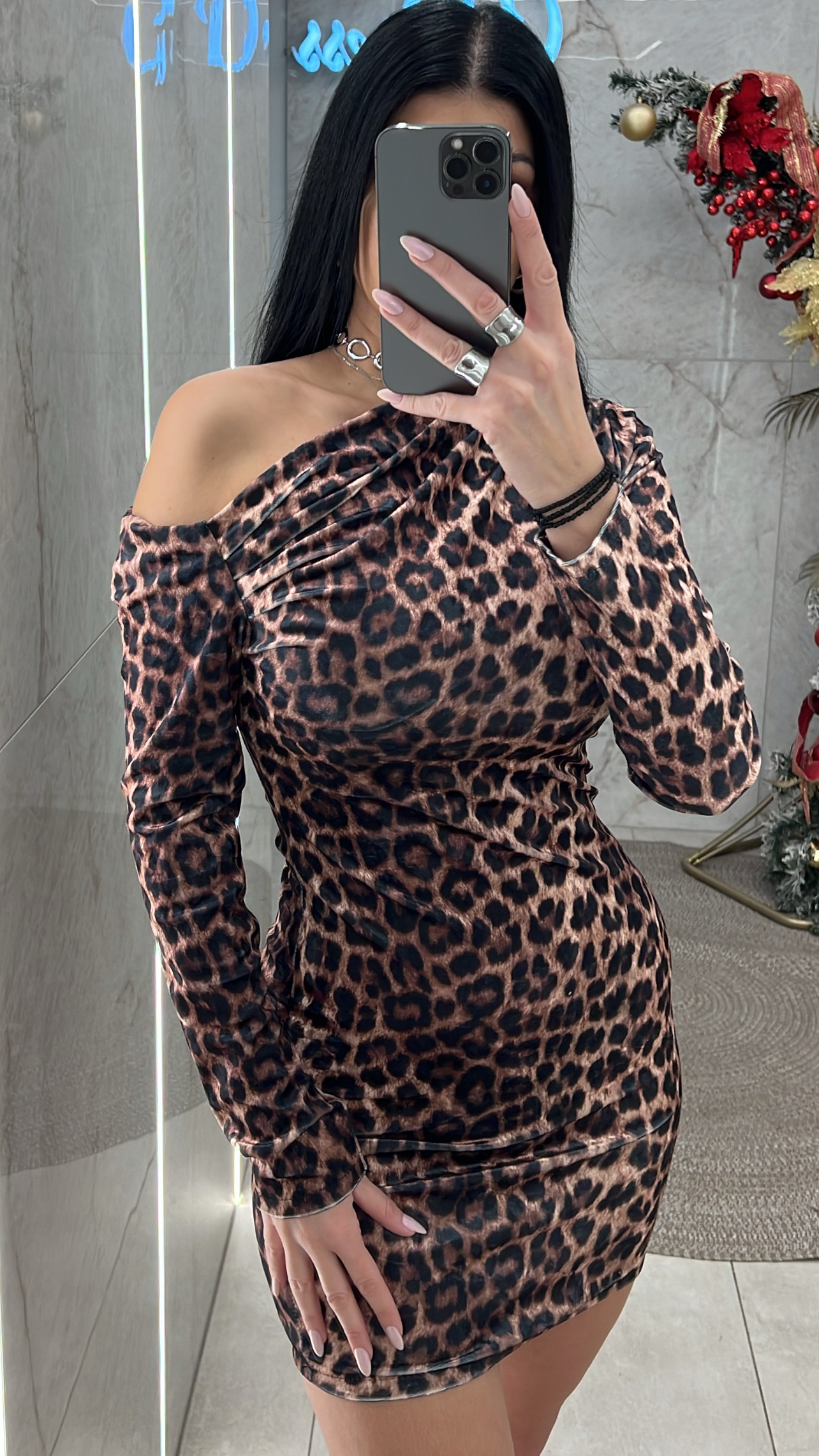 Λεοπάρ φόρεμα βελουτέ με έναν ώμο έξω