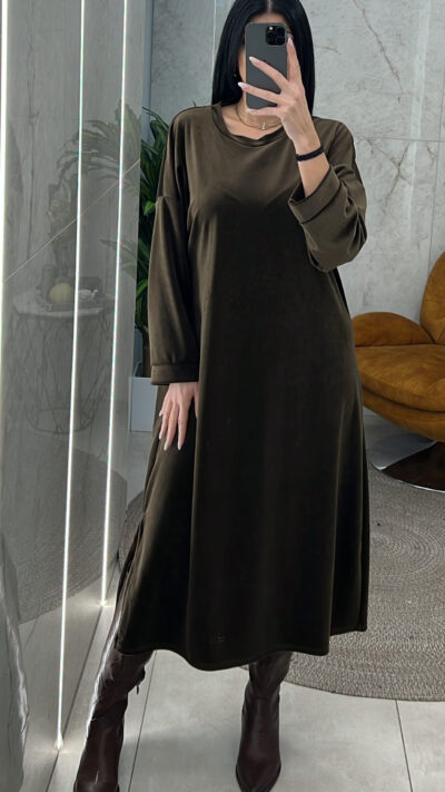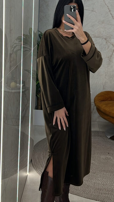 Φόρεμα βελουτέ oversized 3176/Καφέ