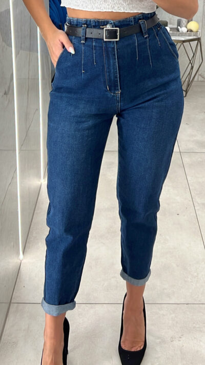 Τζιν Ψηλόμεσο με Ζώνη-8227/Μπλε