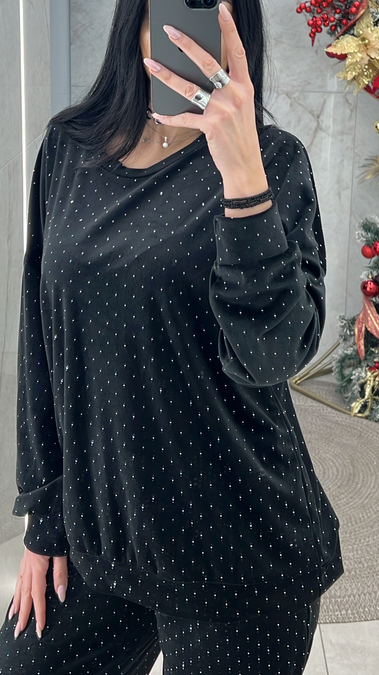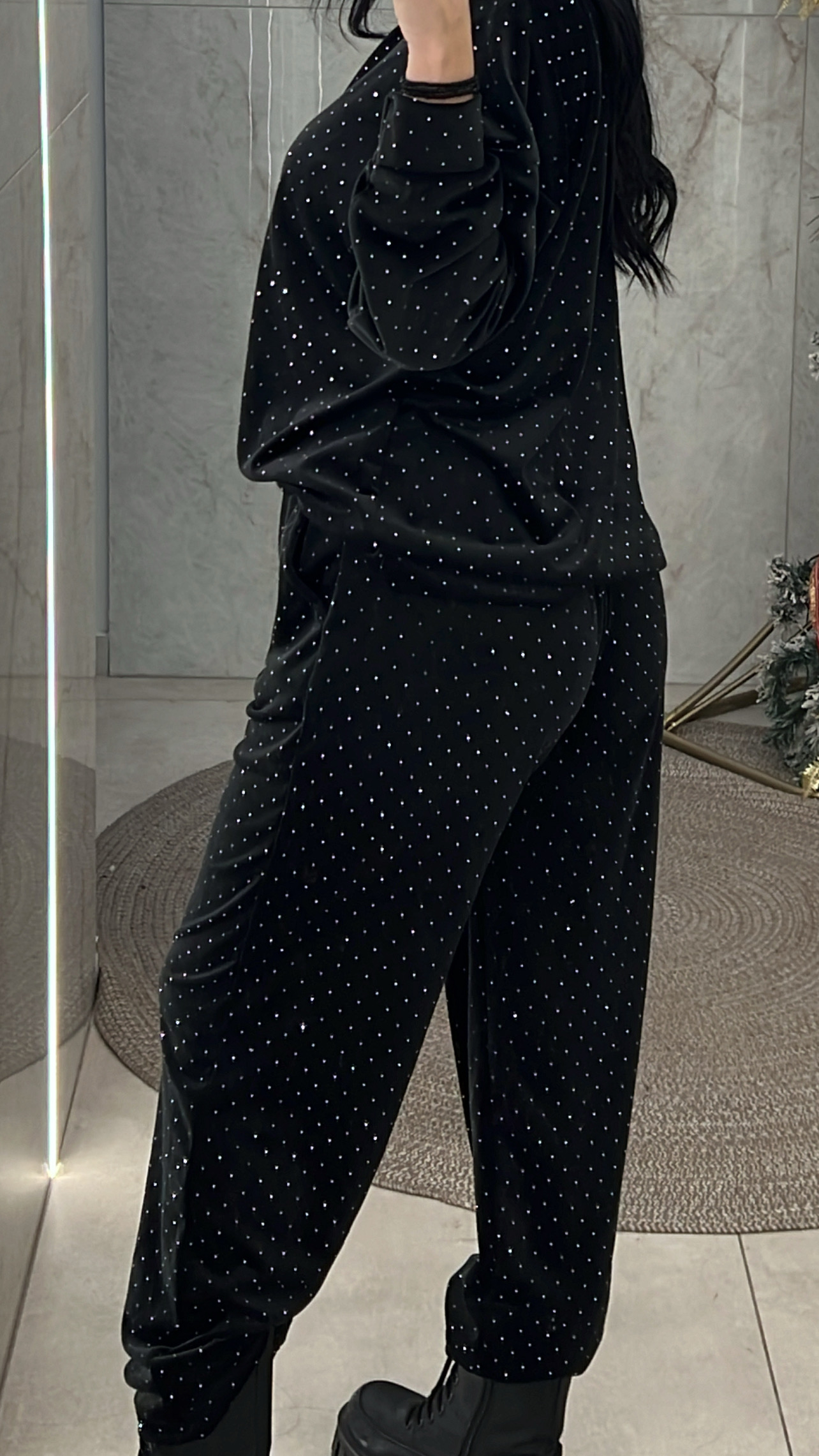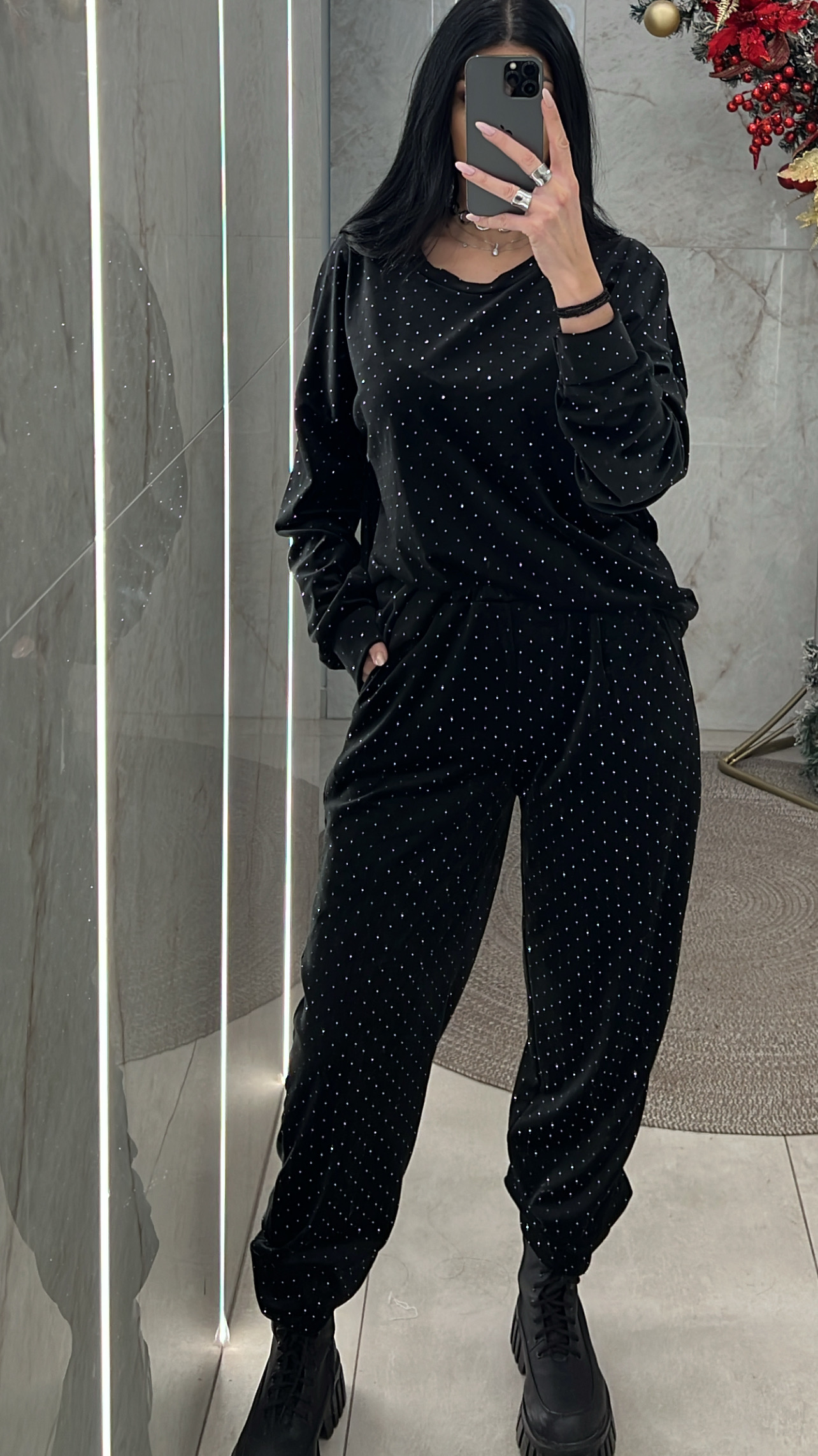 Φόρμα με στρας βελουτέ 15819/Μαύρο