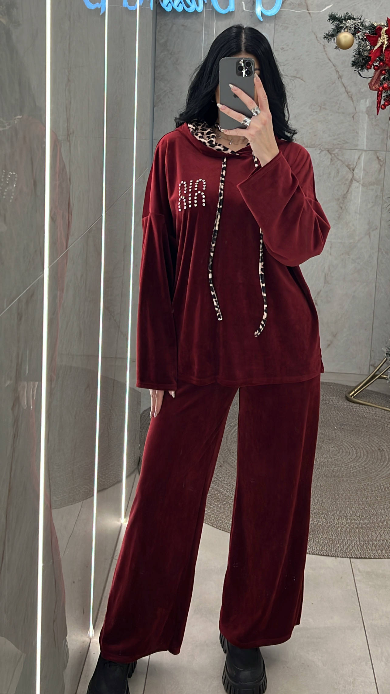 Φόρμα Βελουτέ με λεπτομέρειες animal 2240/Μπορντώ