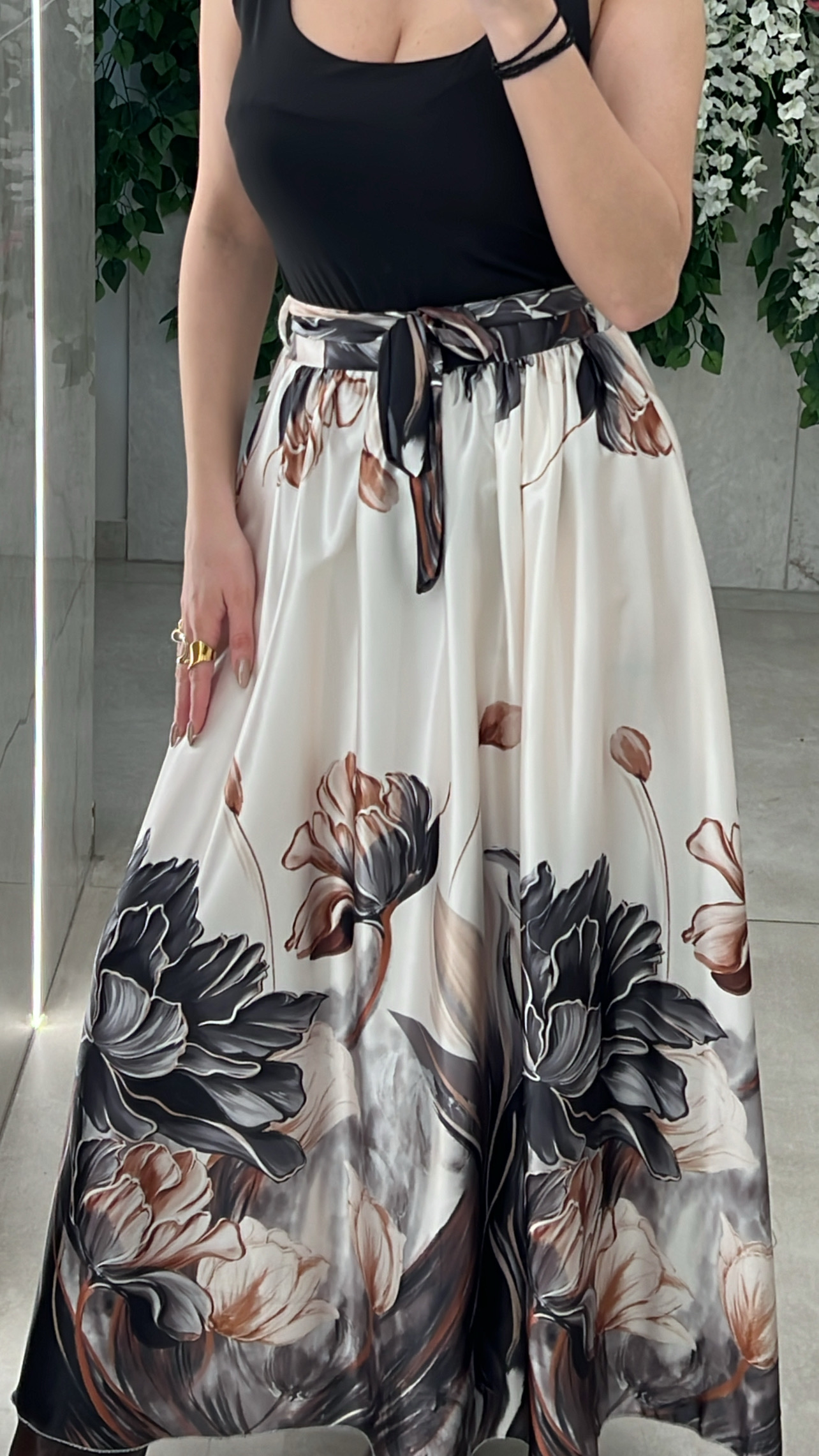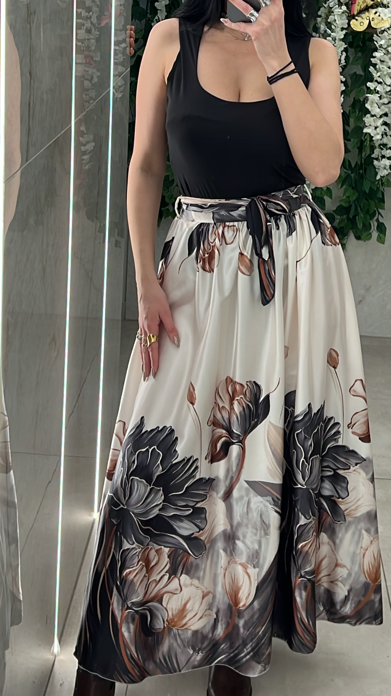 Φουστα Φλοραλ Σατεν 300989/ Μαυρο