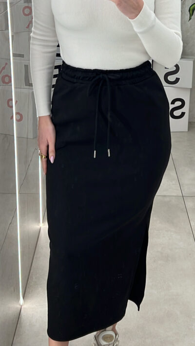 Φούστα μακριά με σκίσιμο στο πλάι , λάστιχο, κορδόνι στην μέση και τσέπες .