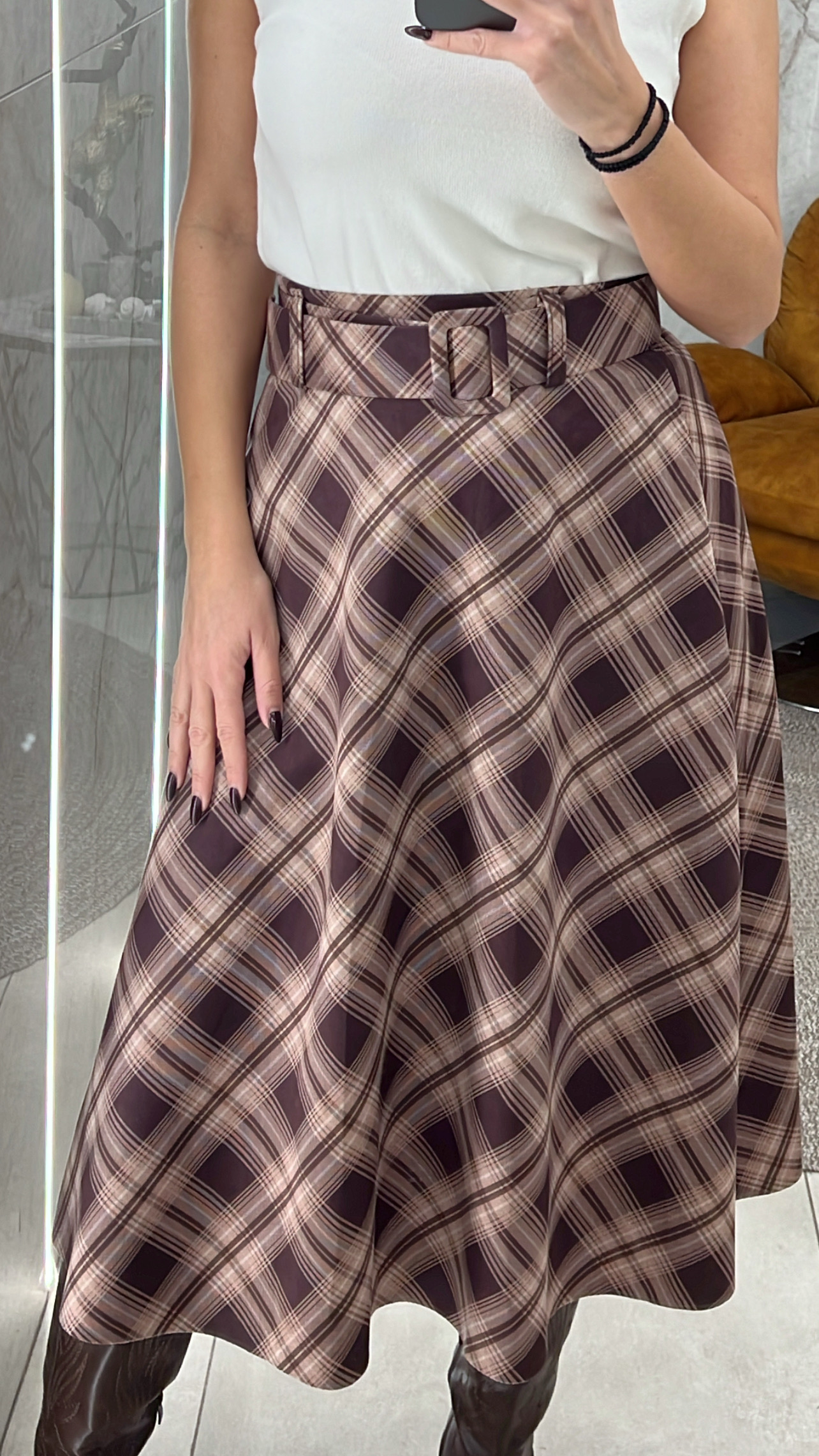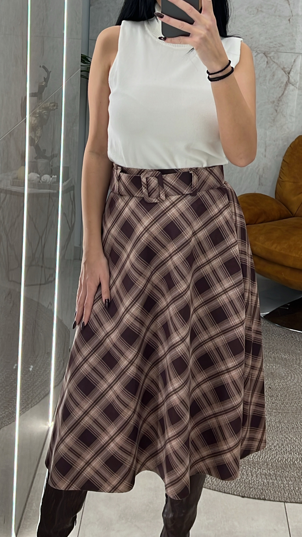 Φούστα ψηλόμεση καρό 02486/Καφέ