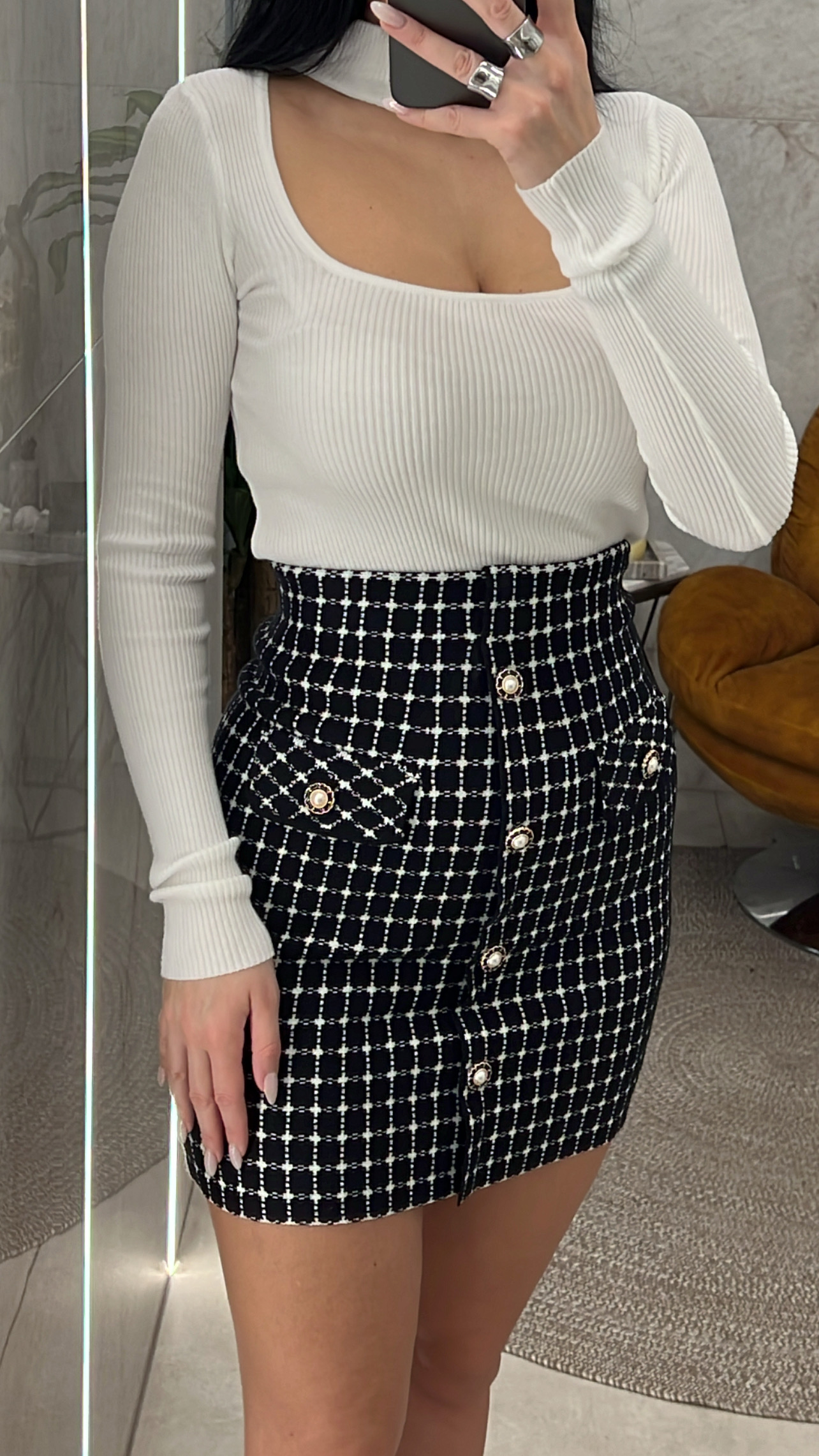 Φούστα ψηλόμεση πλεκτή 6951/Ασπρόμαυρη