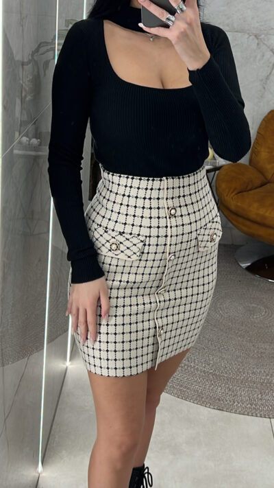 Φούστα ψηλόμεση πλεκτή με χρυσά κουμπιά και λάστιχο στην μέση