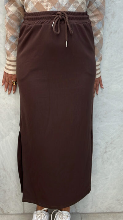 Φούστα Σουέτ με κρόσια 2082/Καφέ