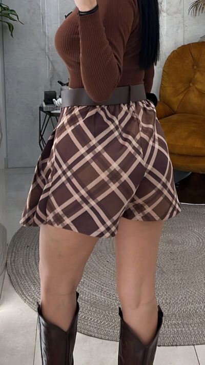 Φουστοσορτσάκι Καρό Σουέτ 18833/Καφέ