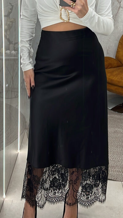 Φούστα Πλεκτή/Μαύρο-Καφέ