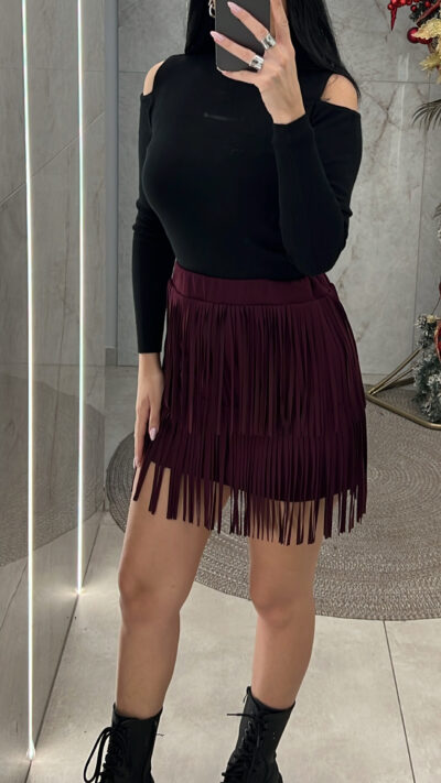 Φούστα σουέτ με κρόσια και λάστιχο στην μέση