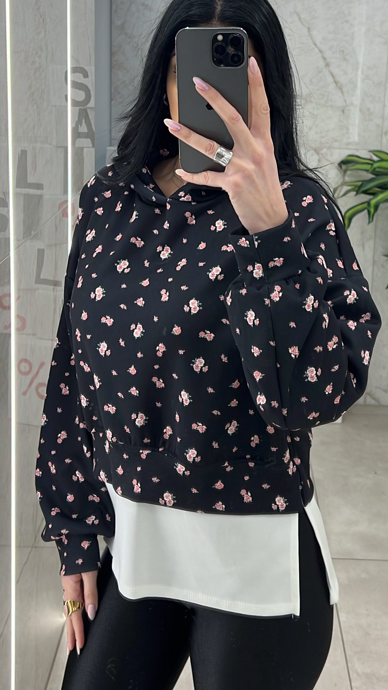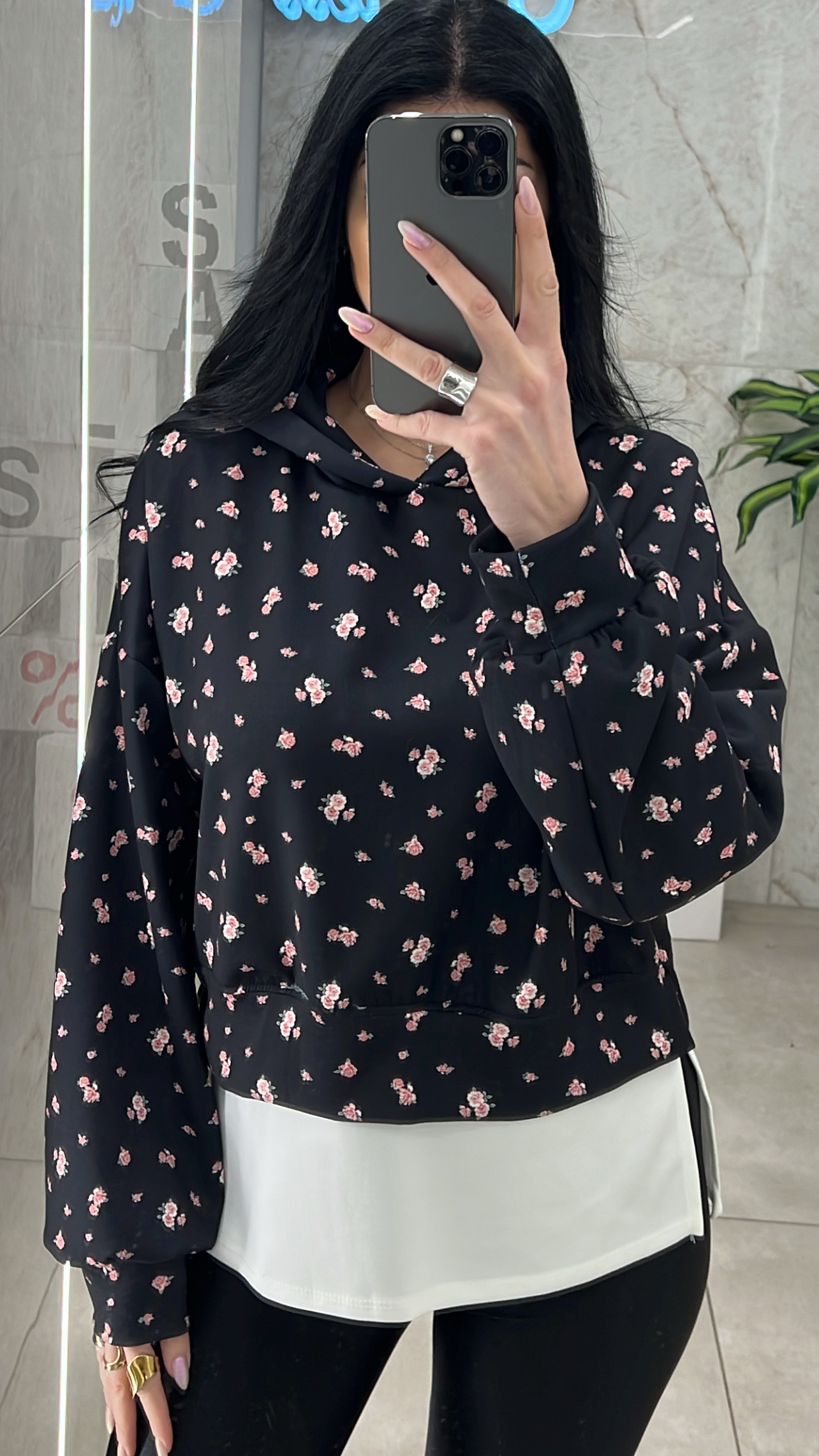 Φούτερ floral με κουκούλα και ενσωματωμένη μπλούζα.