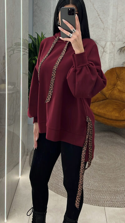 Φούτερ με animal λεπτομέρειες 4536/Μπορντό