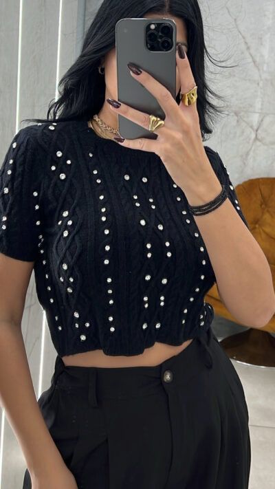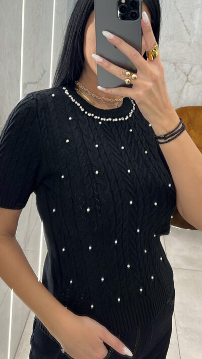Πλεκτή Μπλούζα Πέρλες/Μαύρο