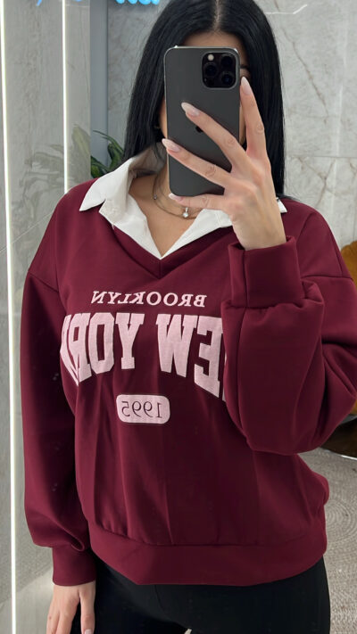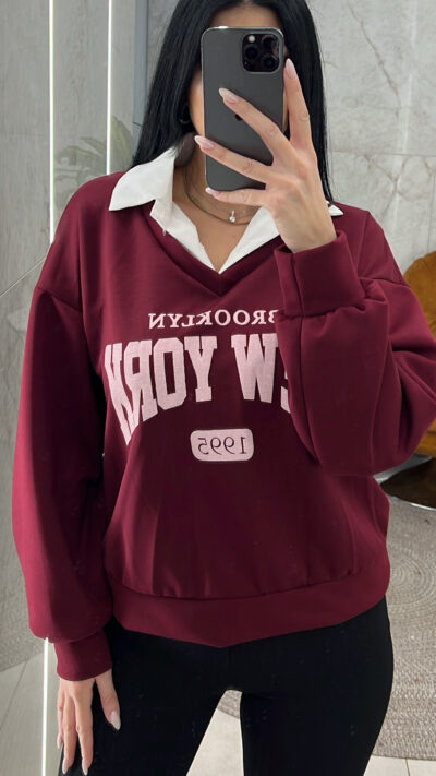 Φούτερ με ενσωματωμένο πουκάμισο 7633/Μπορντό