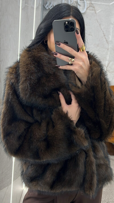 Γούνα οικολογική καφέ που κλείνει με δύο κουμπιά