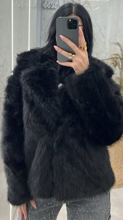 Γούνα μαύρη φοδραρισμένη διαθέτει τσέπες και είναι μακρύτριχη
