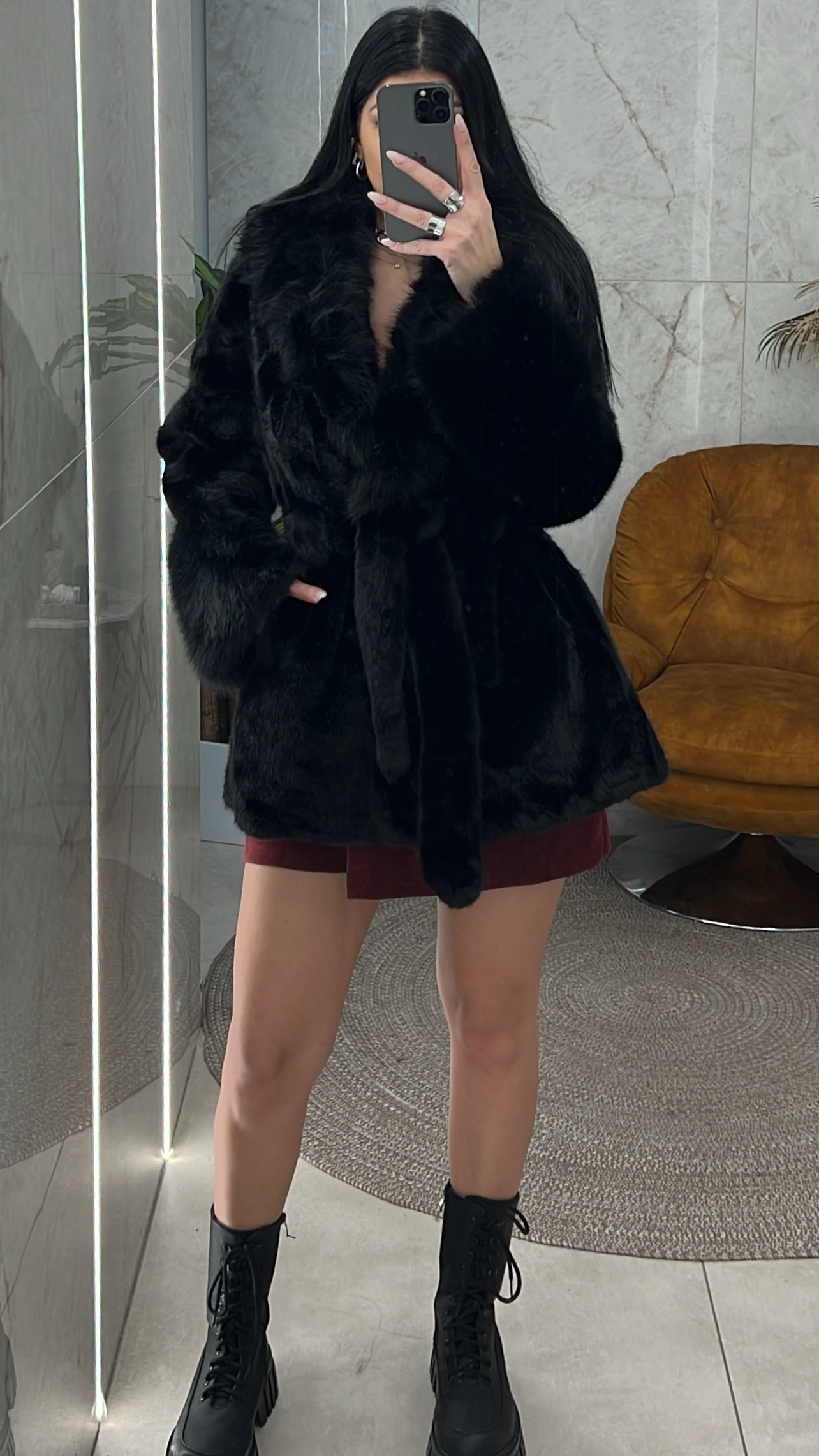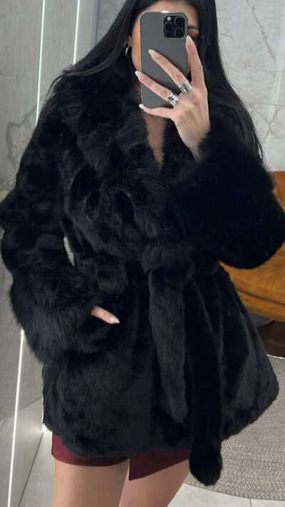 Γούνα με γιακά και ζώνη, έχει τσέπες με εσωτερική επένδυση και κουμπιά.