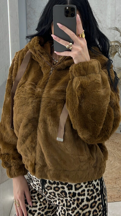 Γουνάκι τύπου bomber/καφέ με λάστιχο στο τελείωμα διαθέτει τσέπες κλείνει με φερμουάρ και είναι φοδραρισμένο.