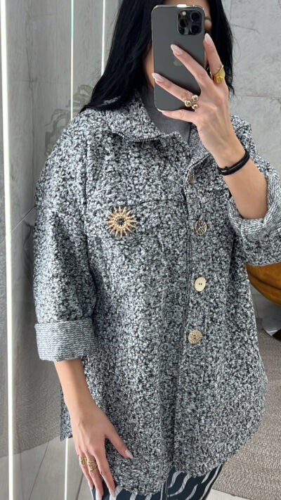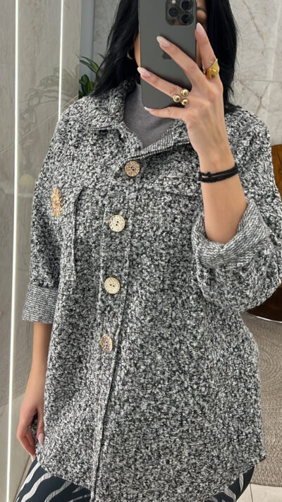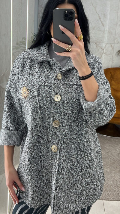 Jacket Teddy τσόχα λεπτό κλείνει με χρυσά κουμπιά  και έχει τσέπη με αγκράφα χρυσή στο στήθος