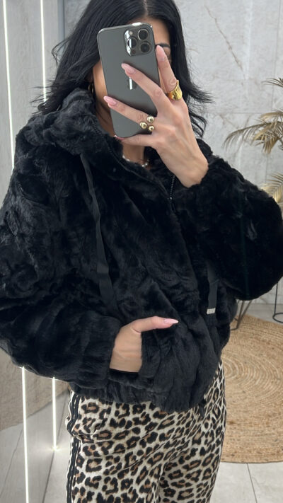 Γουνάκι Τύπου Bomber/Μαύρο