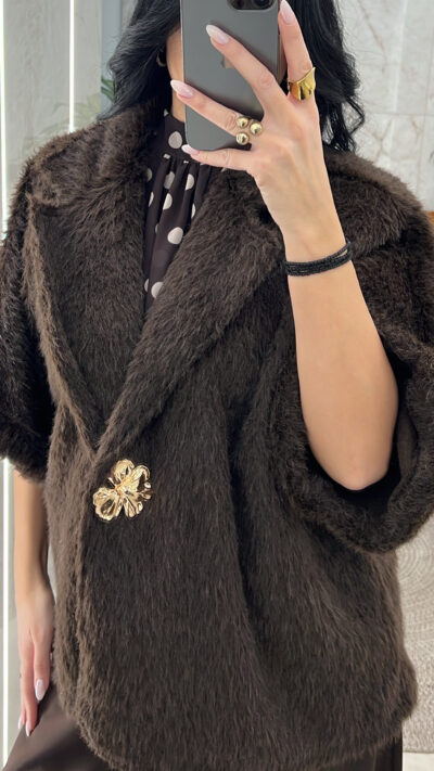 Mohair Ζακέτα με Καρφίτσα/Καφέ