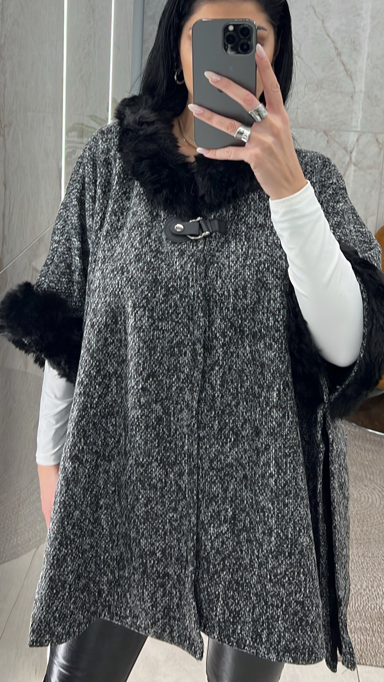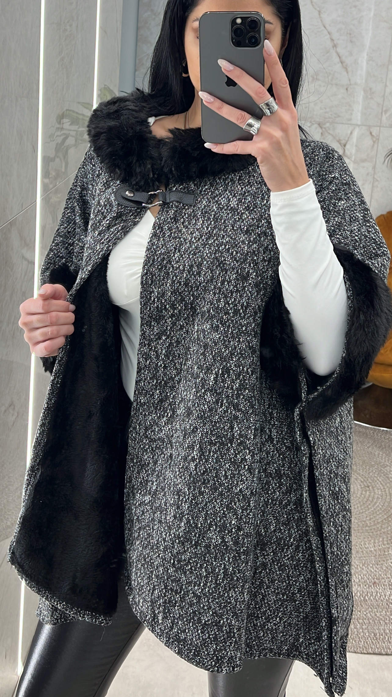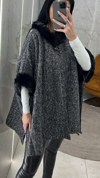 Κάπα με γούνα εσωτερικά γούνα στο γιακά και στα μανίκια ανοίγματα στο πλάι κουμπώνει μπροστά με κλιπ