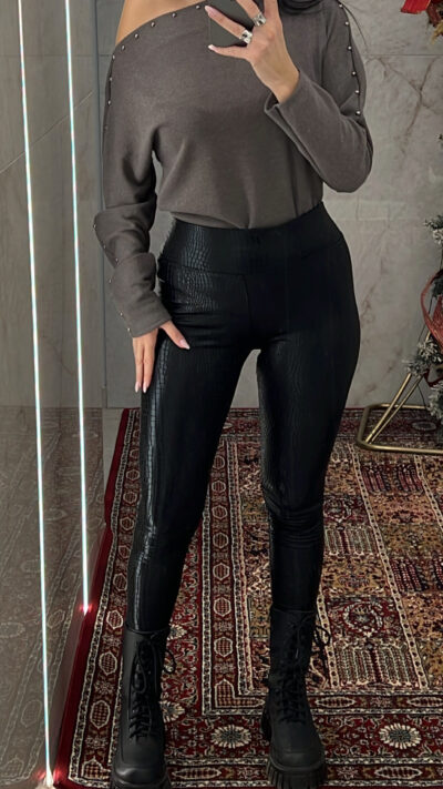 Παντελόνα Πλεκτή με Μαίανδρο στο πλάι 5518/Μαύρο
