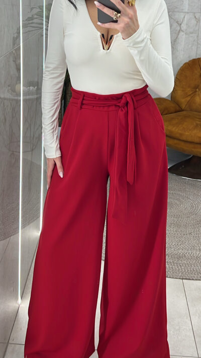 Κρεπ Παντελόνα με Ζωνάκι-4617/Κόκκινο