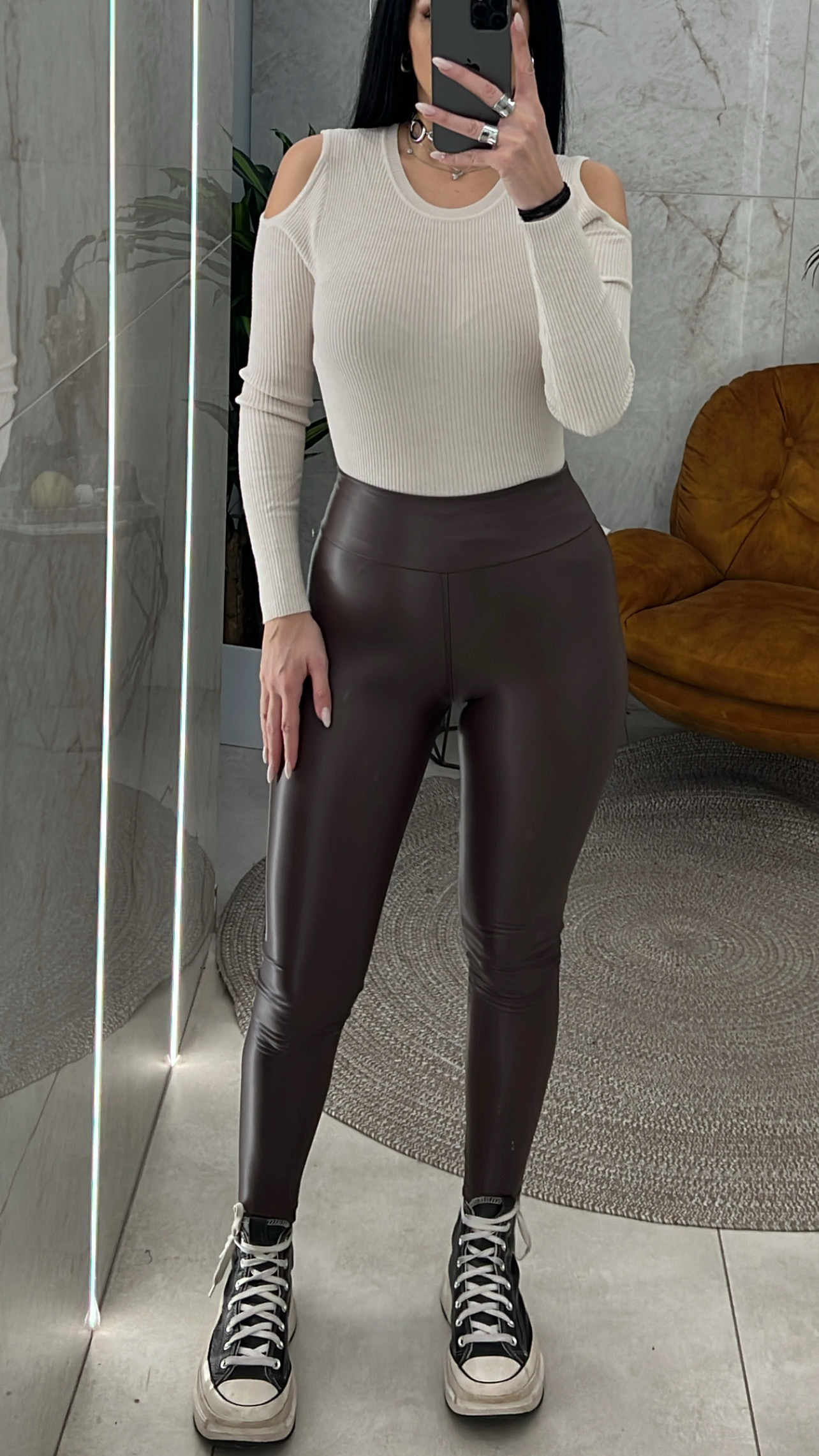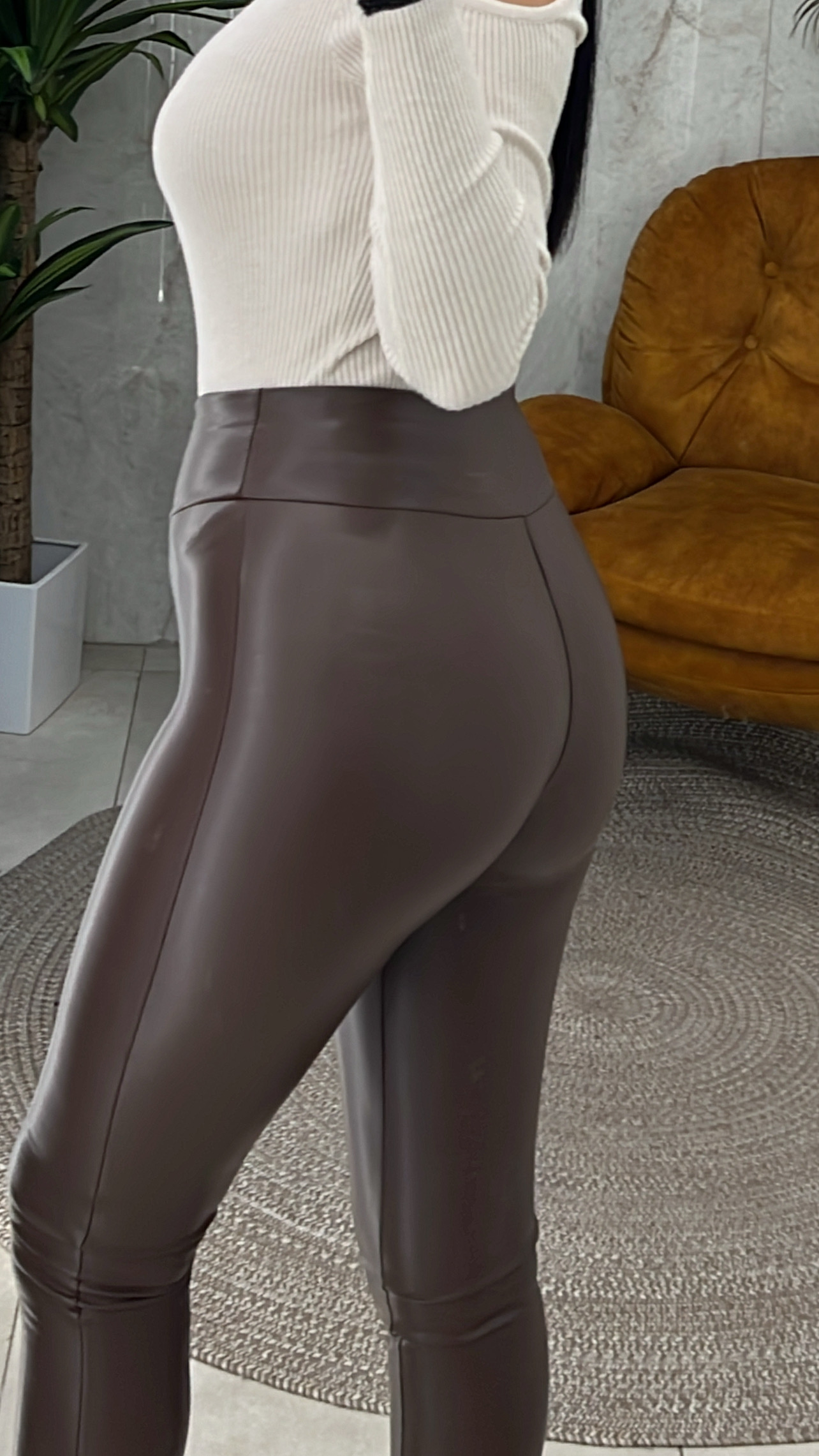Παντελόνα με Ζωνάκι Δερματίνη/Καφέ