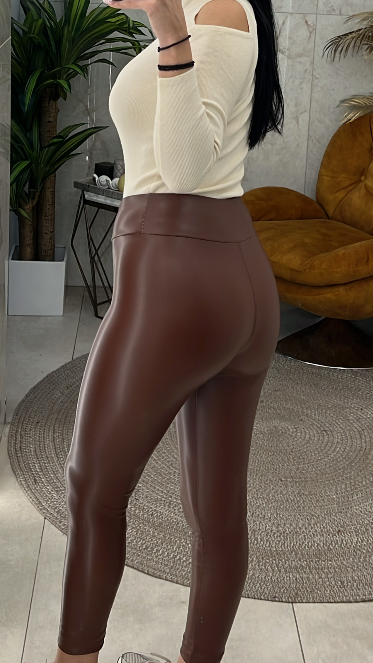 Παντελόνα δερματίνη 6321/Καφέ