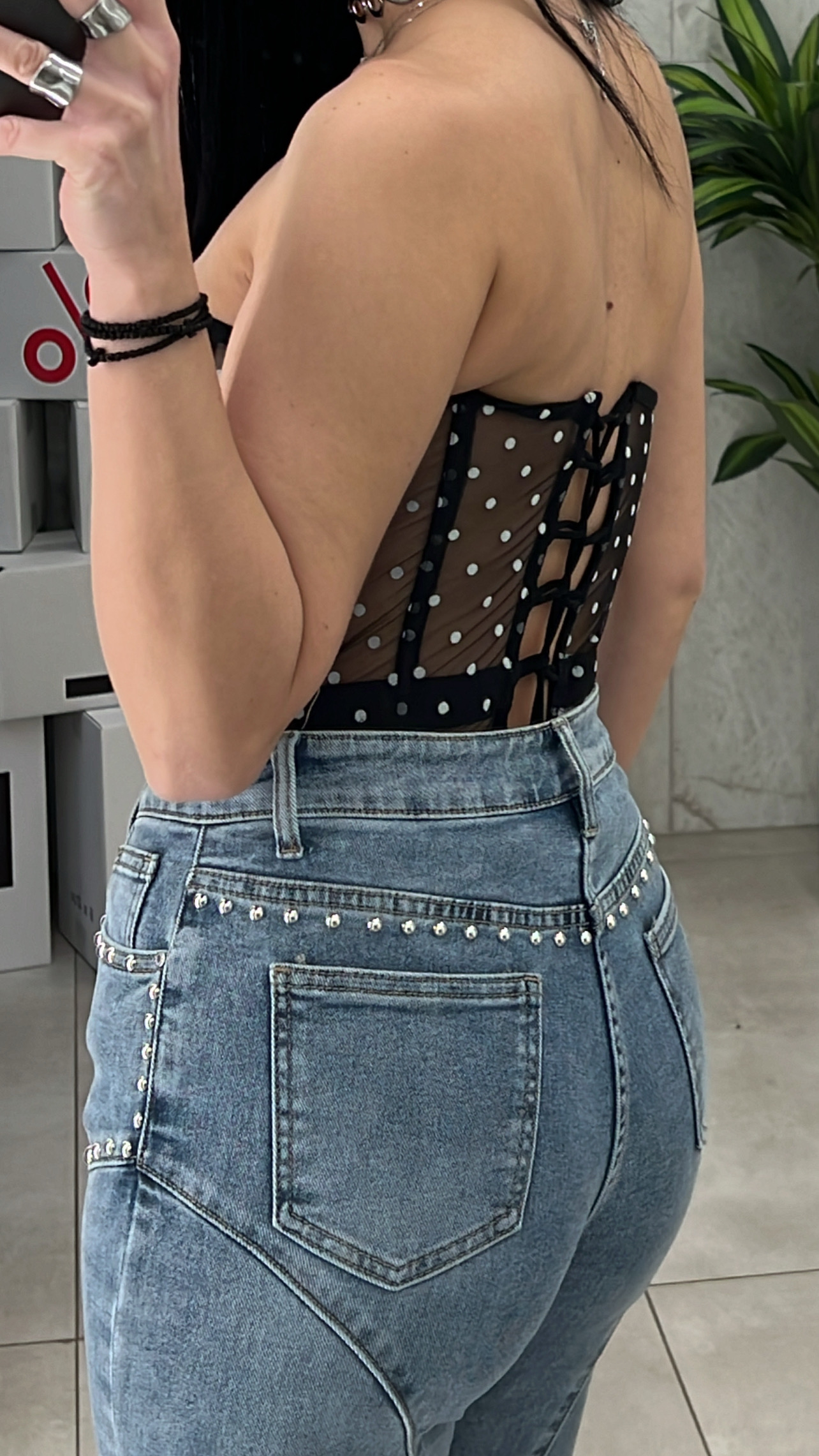 Τοπ κορσές πουά διαφάνεια ,με κάπς στο στήθος ,προσαρμόζεται και δένει στην πλάτη με κορδόνι .