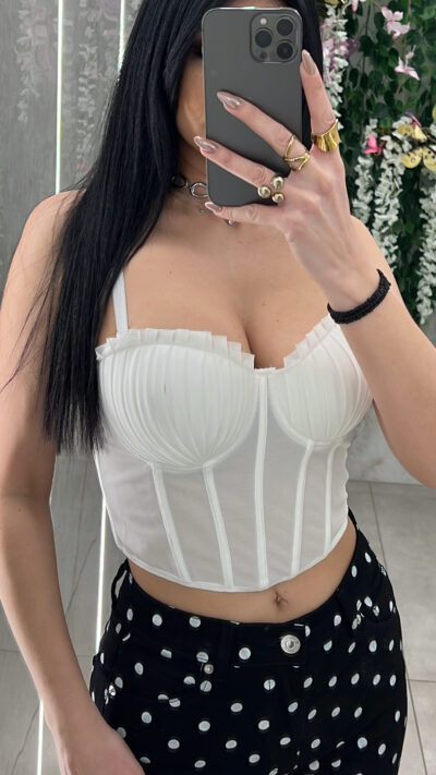 Κορσές με αποσπόμενες τιράντες ,καπς στο στήθος και κλεινει με κόπιτσες στην πλάτη .