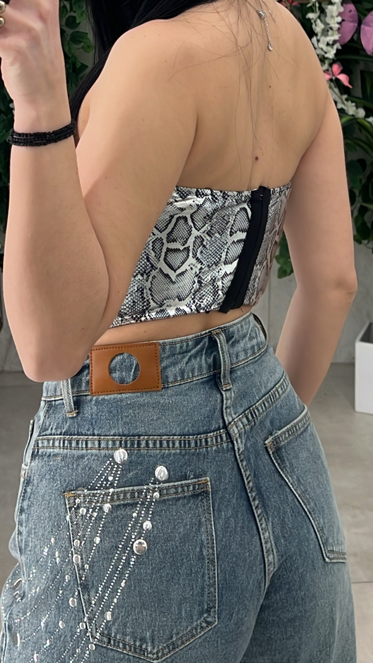 Κορσες με print μεταλικ φιδι ,διαθέτει αποσπόμενες τιράντες ,καπς στο στήθος και κλεινει με κόπιτσες στην πλατη .