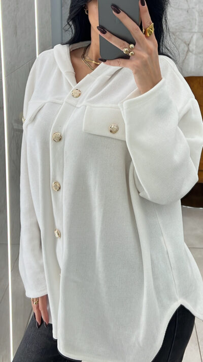 Κοτλέ μαλακό πουκάμισο σε άνετη γραμμή με χρυσά κουμπιά και κουκούλα.