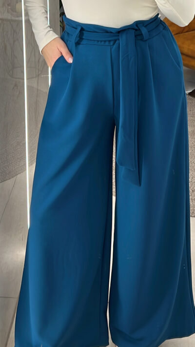 Κρεπ Παντελόνα με Ζωνάκι-4617/Πετρόλ
