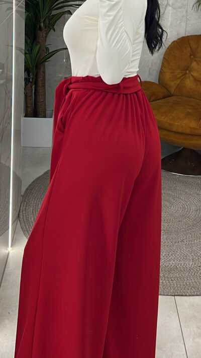 Κρεπ Παντελόνα με Ζωνάκι-4617/Κόκκινο