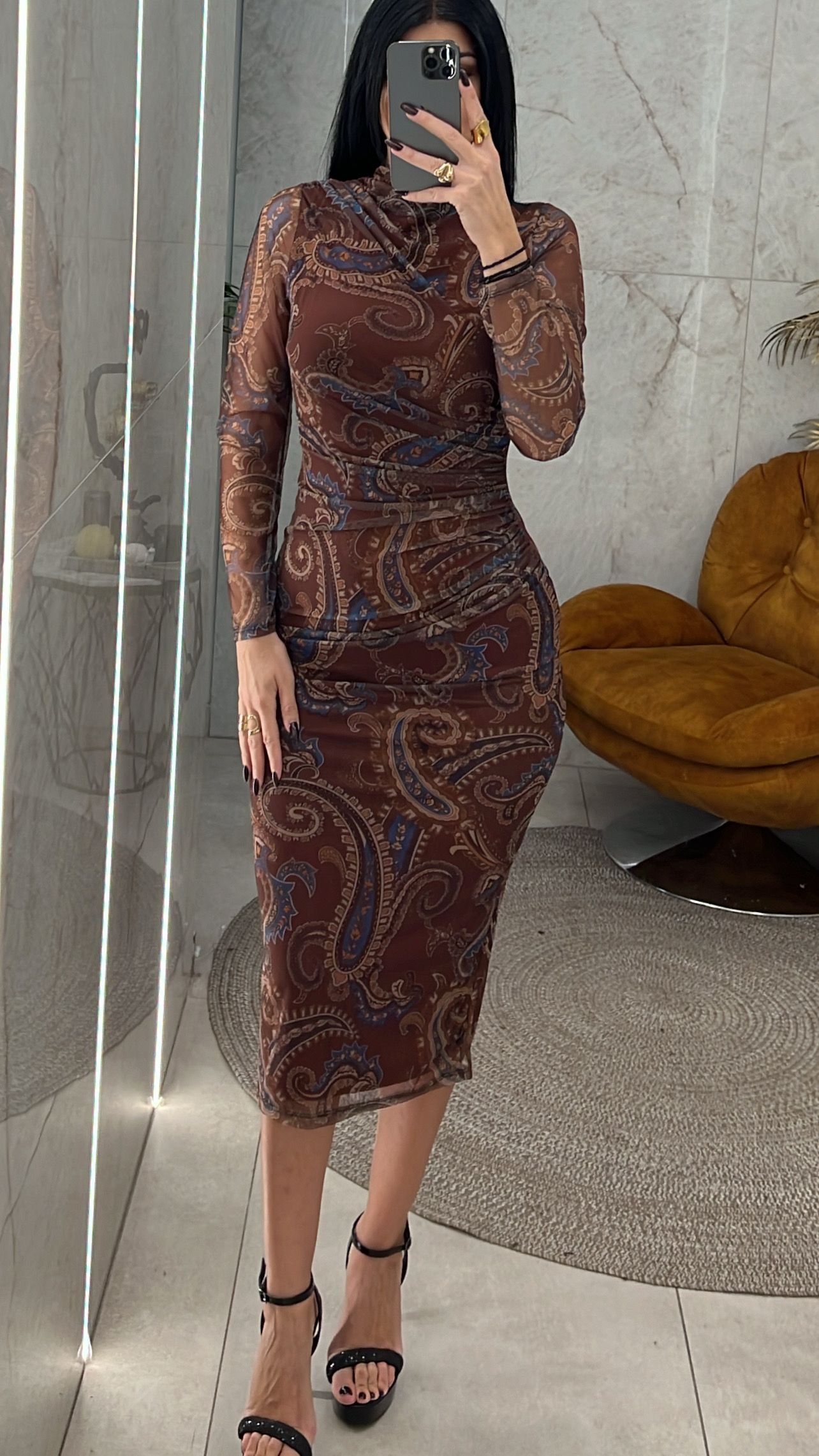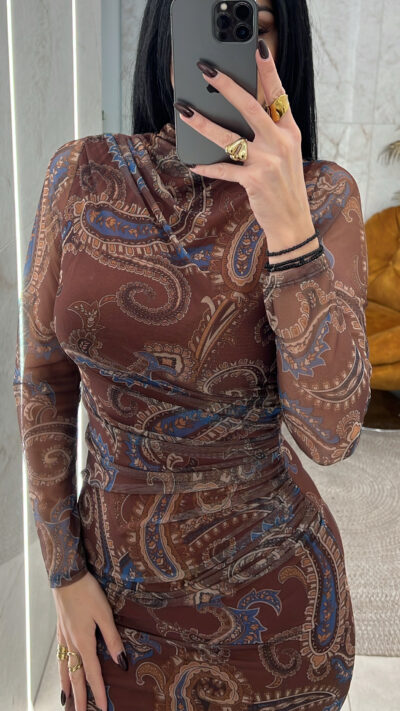 Ζιβάγκο φόρεμα διαφάνεια με εσωτερική φόδρα. Στη μέση κάνει σούρες.