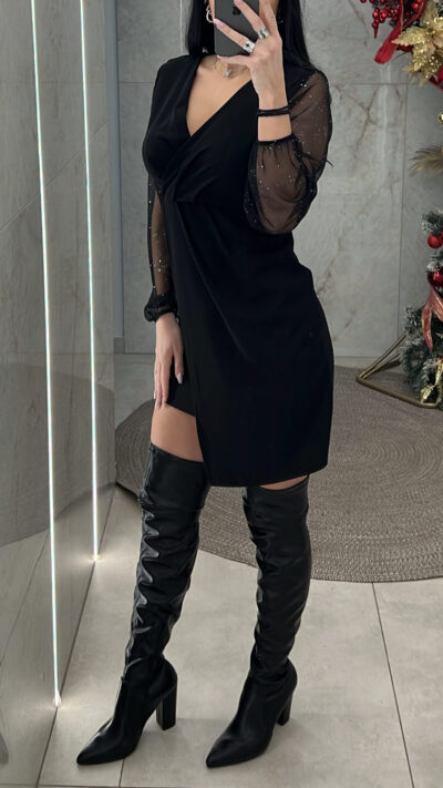 Φόρεμα με μανίκια glitter 2896/Μαύρο