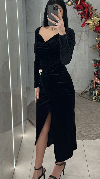 Φόρεμα βελουτέ με χρυσή λεπτομέρεια