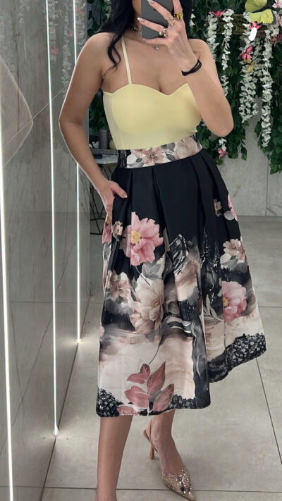 Φούστα Σατεν Φλοραλ 6828/ Μαυρο