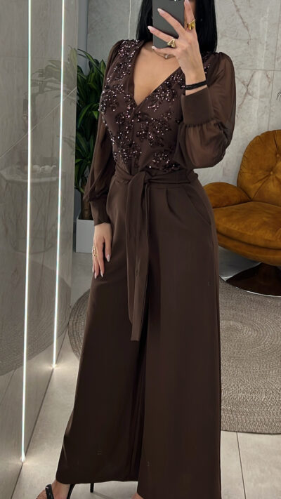 Ολόσωμη φόρμα με παγιέτα 6192/Καφέ
