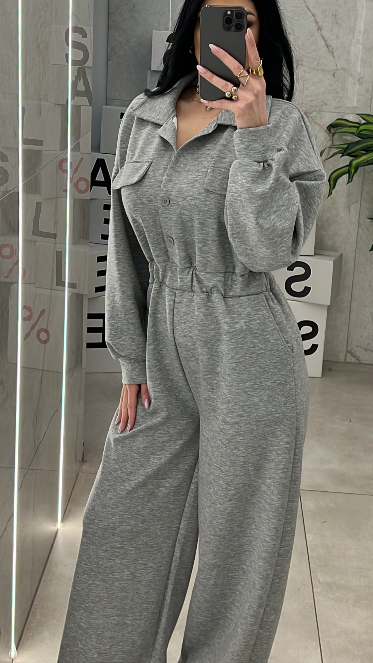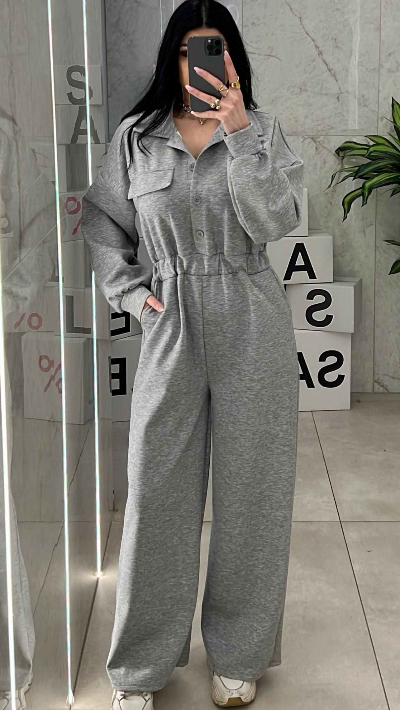Ολόσωμη παντελόνα με λάστιχο στην μέση και τσέπες .
