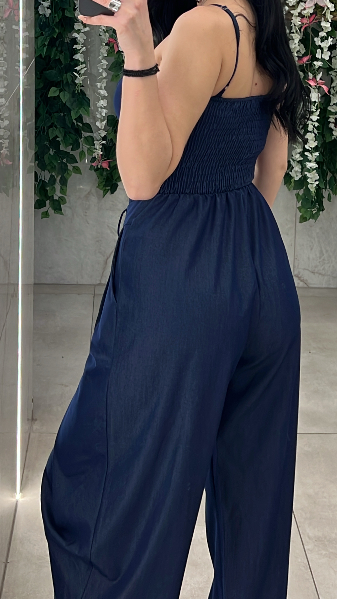 Ολόσωμη με καπς στο στηθος , ρυθμιζόμενες τιραντες , λαστιχο στην πλατη  και τσέπες .