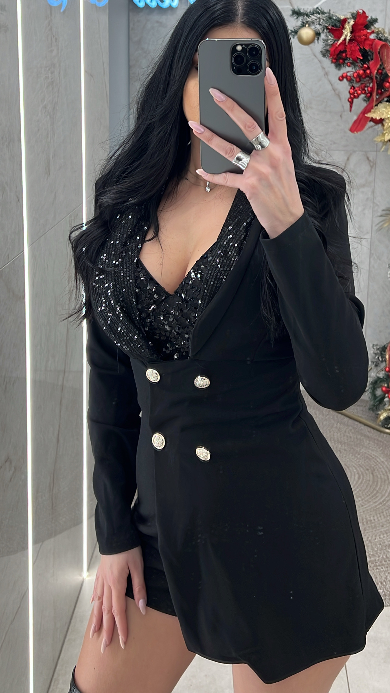 Ολόσωμο φουστοσορτσάκι με παγιέτα, Έχει κουμπιά μπροστά και κλείνει με φερμουάρ στο μπροστινό μέρος και διαθέτει και τσέπες