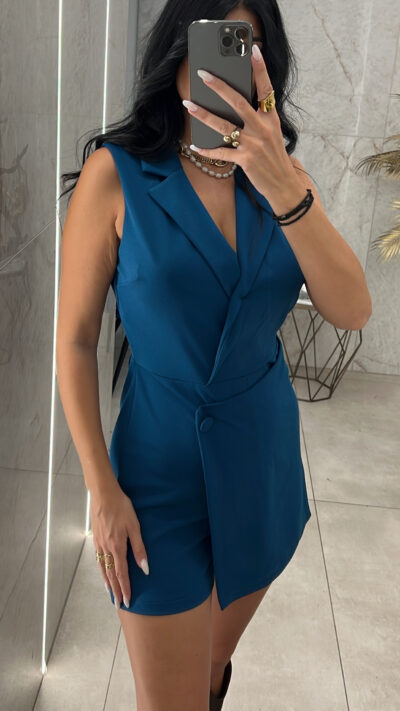 Ολόσωμο Φουστοσορτσάκι 6045/Πετρόλ διαθέτει cups στο στήθος έχει φερμουάρ πίσω στην πλάτη