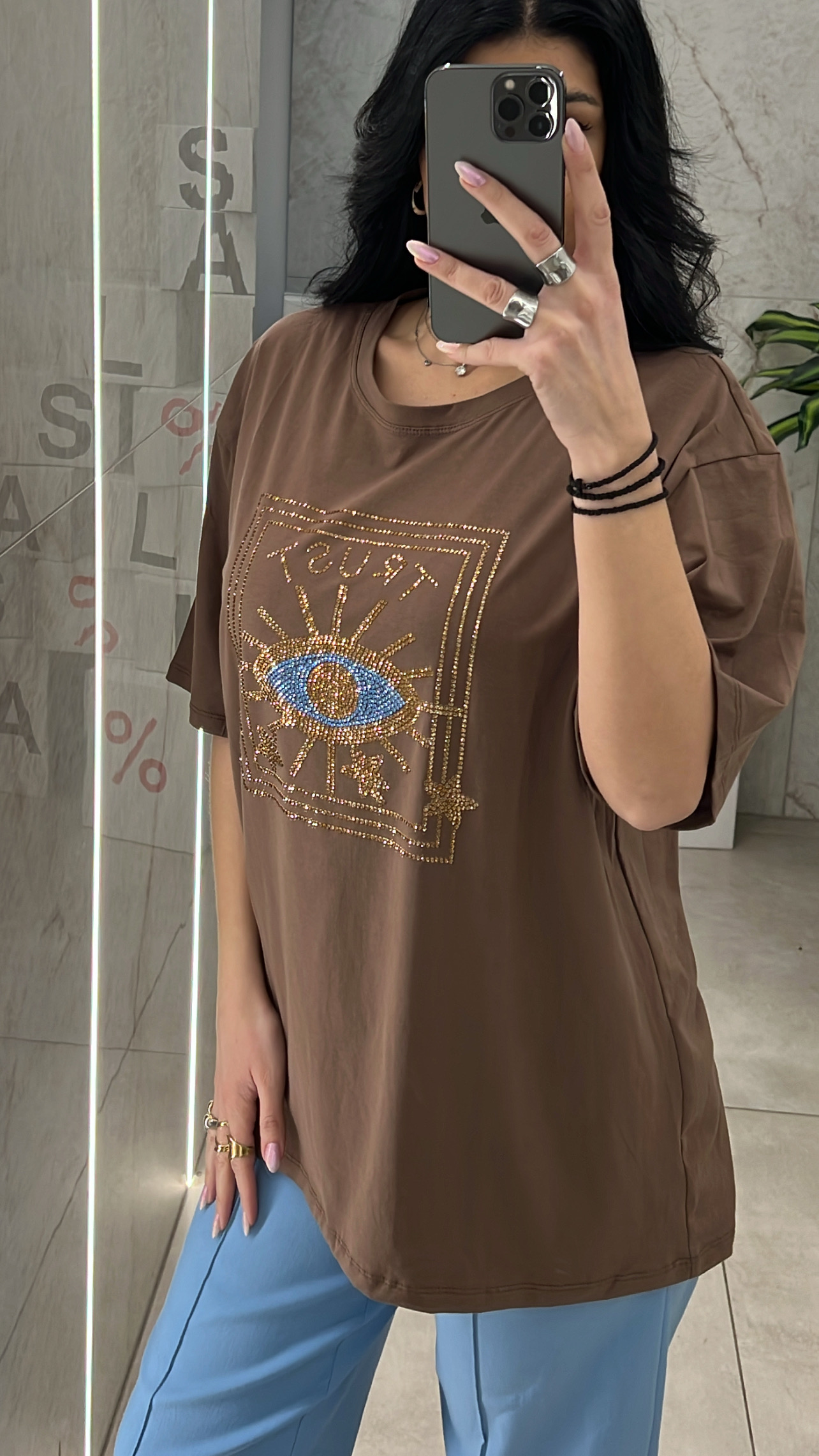 Oversized Μπλούζα Με Στάμπα Κ842/ Καφέ