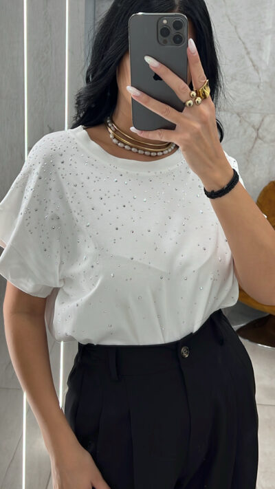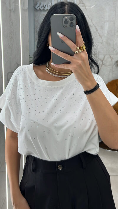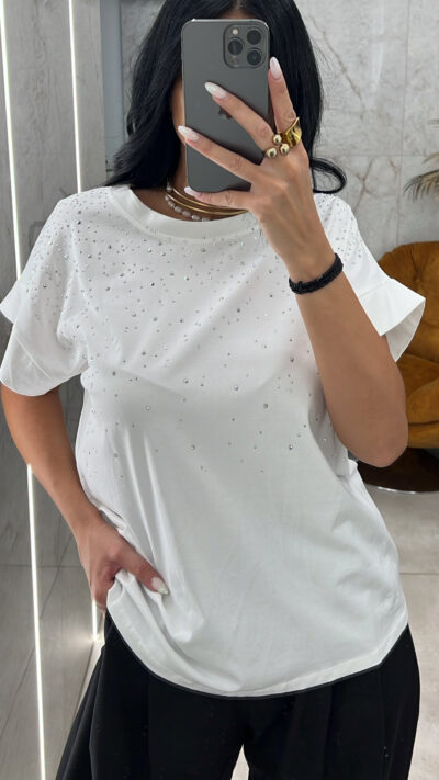 T-shirt σε άνετη γραμμή με στρας στο μπροστά μέρος.